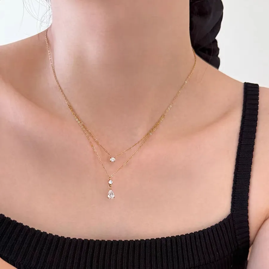 As you take a closer look, the fine details become even more appealing. The carefully balanced layers, paired with the soft sparkle of each crystal drop, create a graceful movement that feels both modern and timeless. Lightweight and comfortable, it sits naturally on the skin, making it perfect for everyday wear or special occasions.